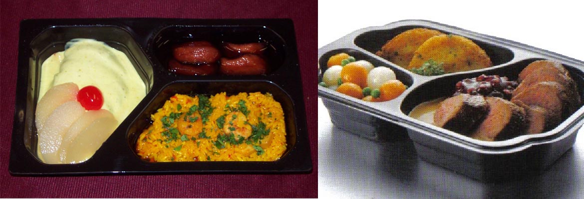 - Menú con pan y cubiertos, envasado en una bandeja microhondable,
